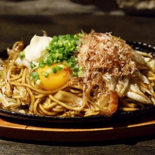 サラダ、ゴマサバ、チョモランマお好み焼き、サバフライ、牛タン、イカゲソ、塩焼きそばと出てきました。
